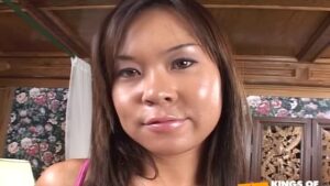 Asian babe gets her tight holes destroyed by a white guy with big dick